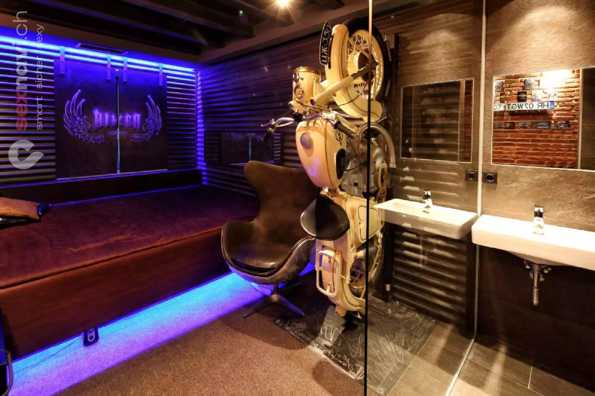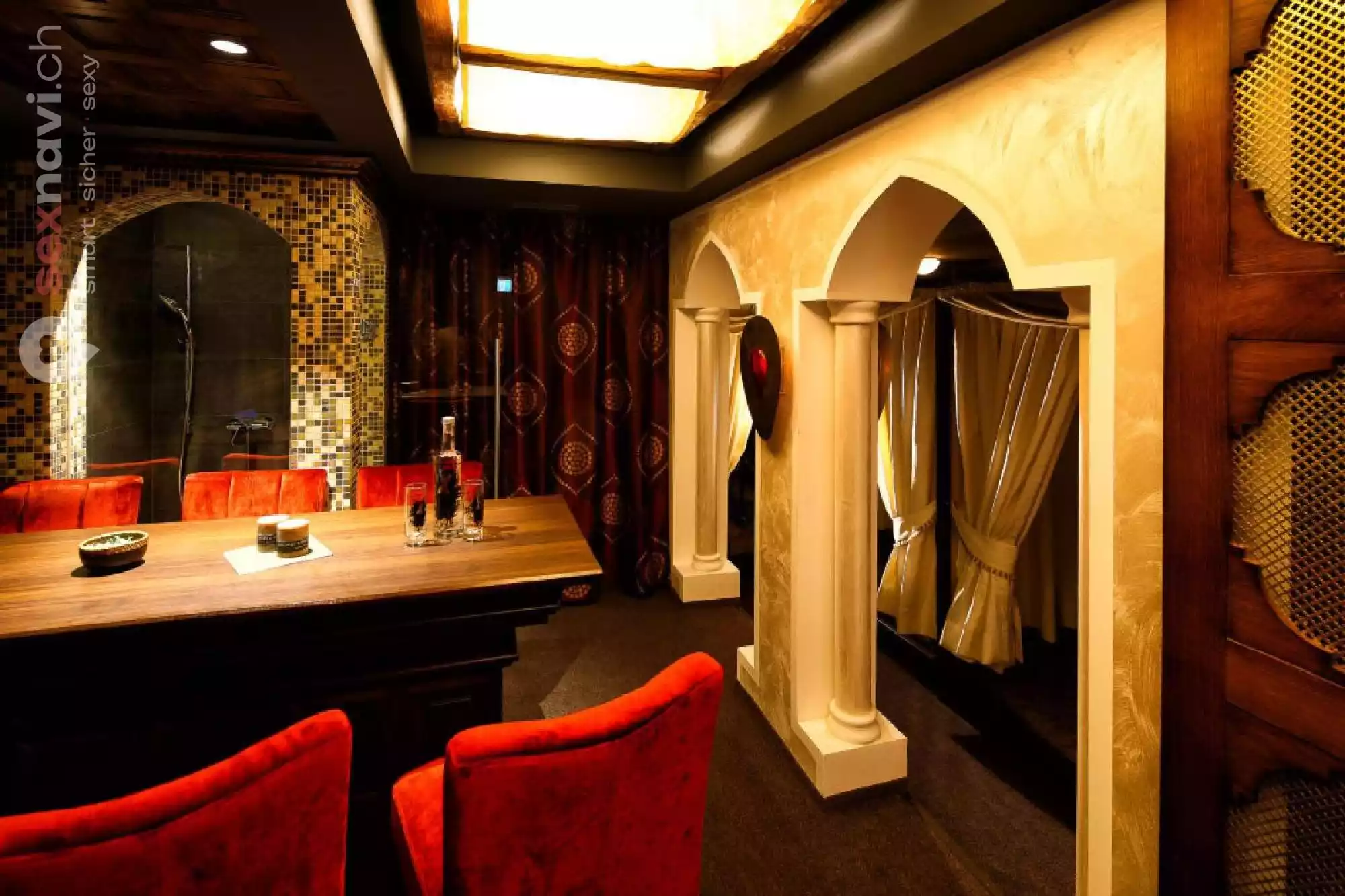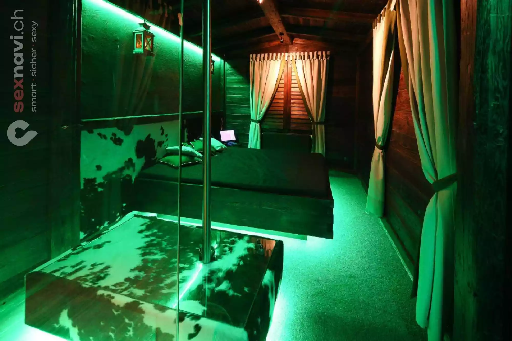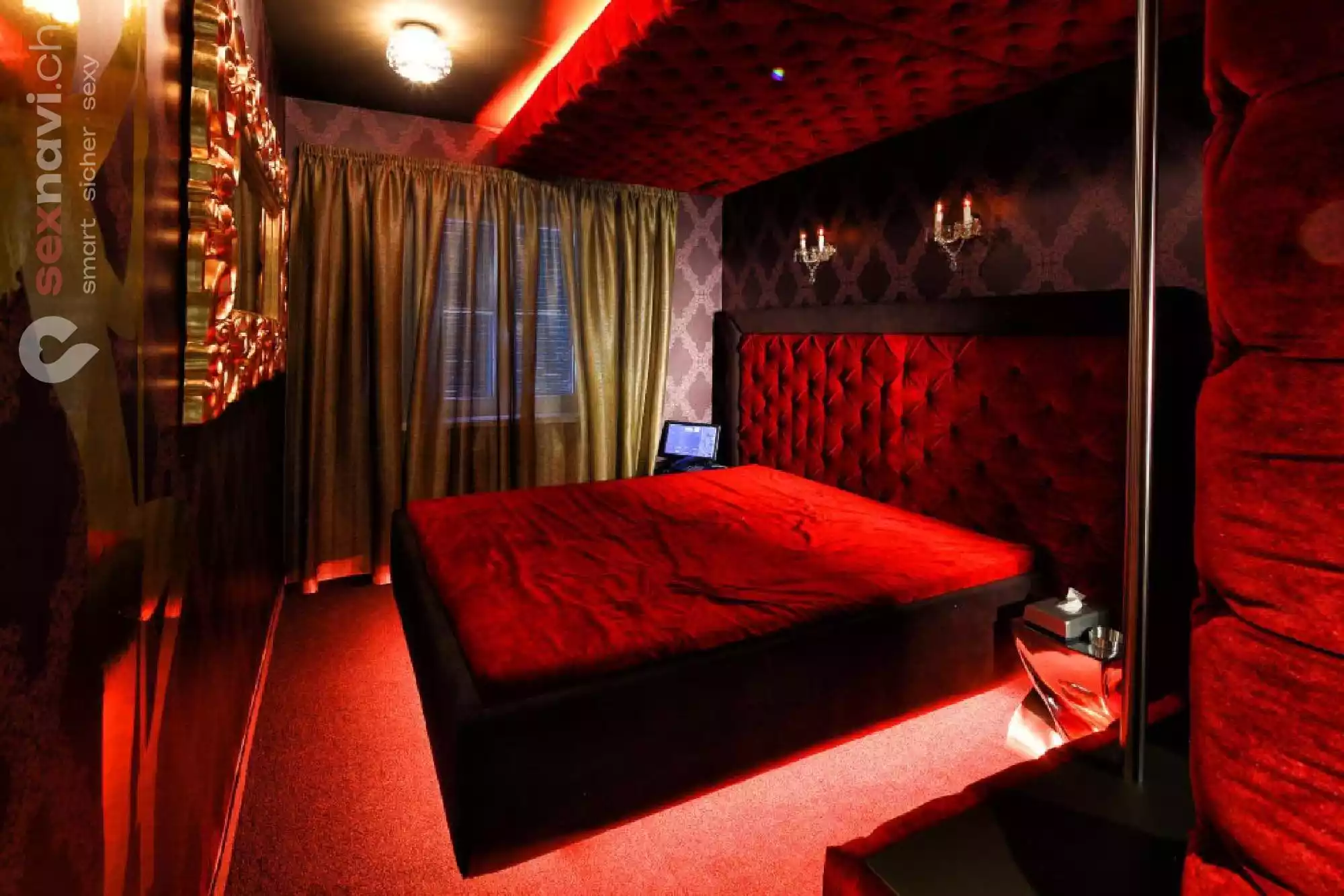 Das rote Plüschzimmer erzeugt eine erotische Stimmung wie es in einen Bordell von 100 Jahren gewesen sein muss, aber ist trozdem auf dem neuesten technischen Standard. Tauchen sie ein in die romantische Umgebung und vergessen sie die Umwelt.