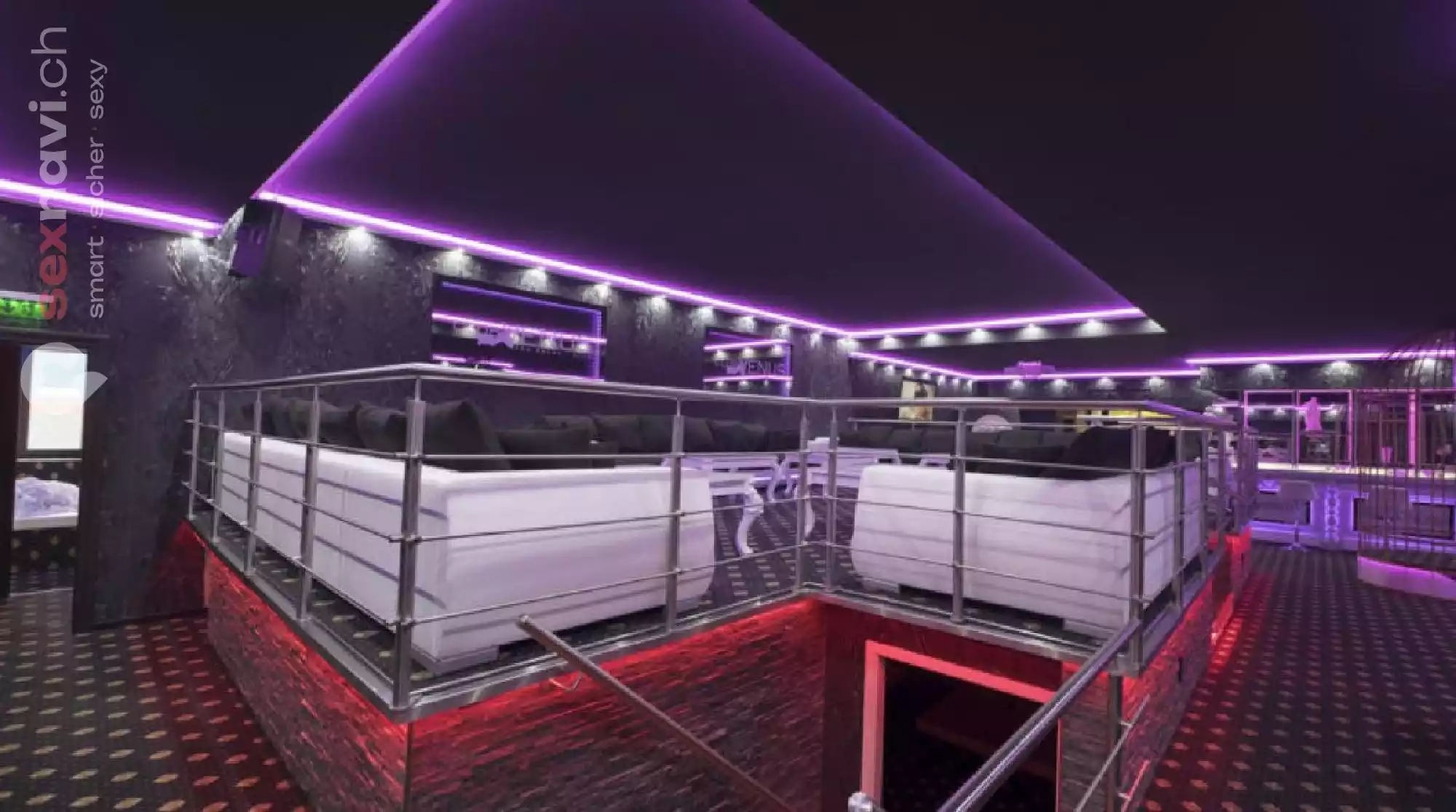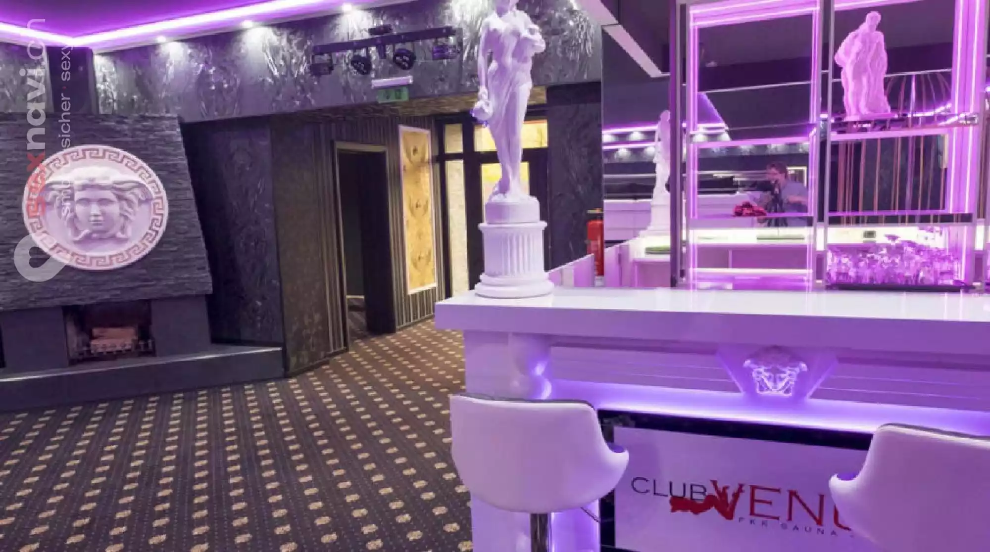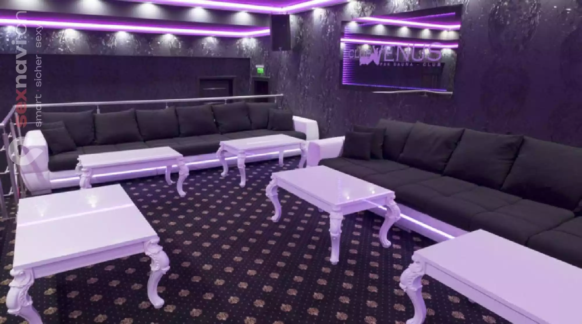 Den Club Venus residiert in einem neu errichteten Bungalow mit edlem Schieferdach. Auch in seinem Inneren finden sich nur die feinsten Materialien wieder. Auf weitem Raum erstreckt sich ein topmodernes Ambiente. Es gibt eine stylishe Lounge und gemütliche Sitzgruppen. Hier kann man perfekt den Kontakt zu den weiblichen Gästen knüpfen. Als Highlight sorgt dort ein Whirlpool mit Panoramablick auf die Bar für Aufsehen.