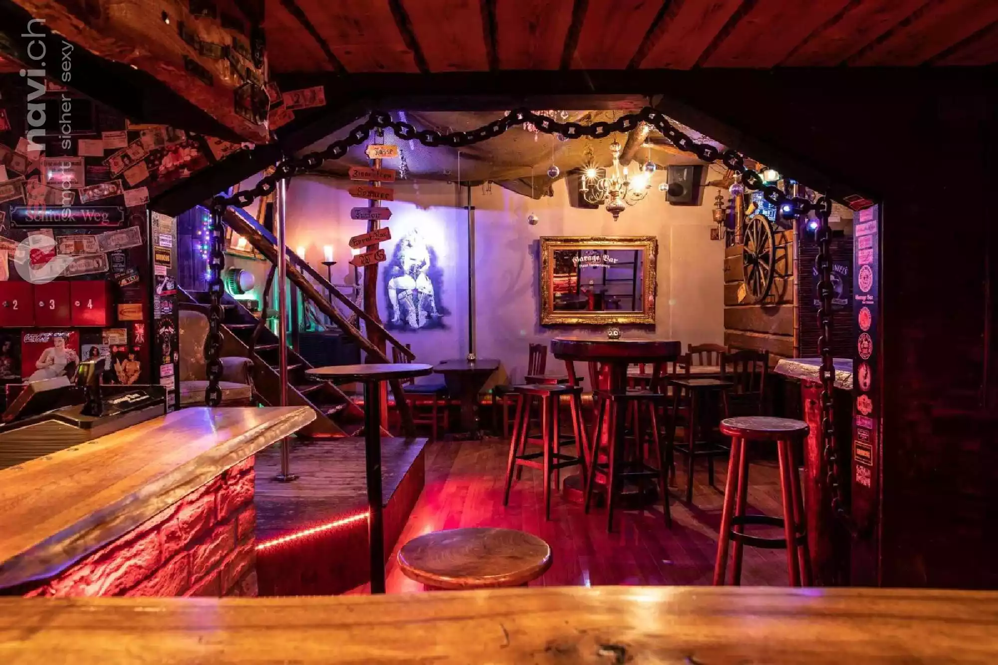 Die Garage Bar ist ein kleiner, rustikaler Club mit gemütlich-familiärem Ambiente. Für gute Stimmung sorgt nicht nur die Musik vom live DJ, sondern auch unsere Tänzerinnen. Mit heissen Shows auf der Bühne und live Tabledance ist den ganzen Abend lang Unterhaltung geboten.